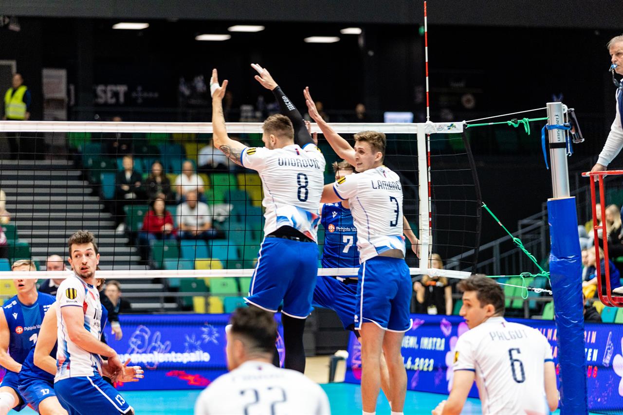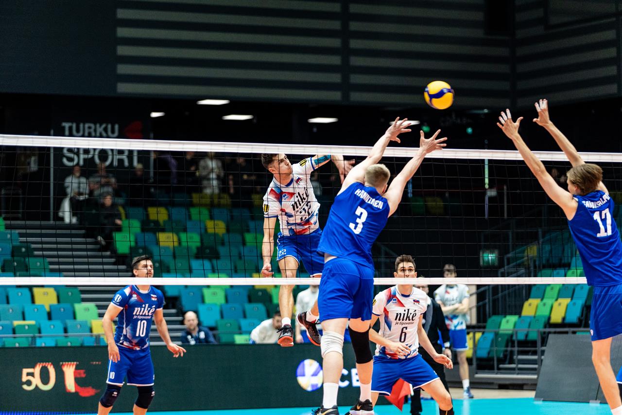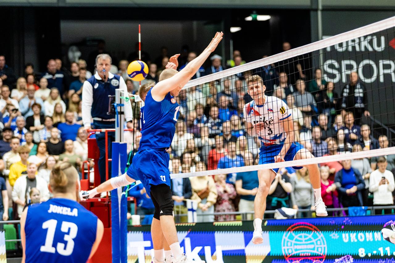 The number of successful point winning blocks of FINLAND compared to SLOVAKIA.