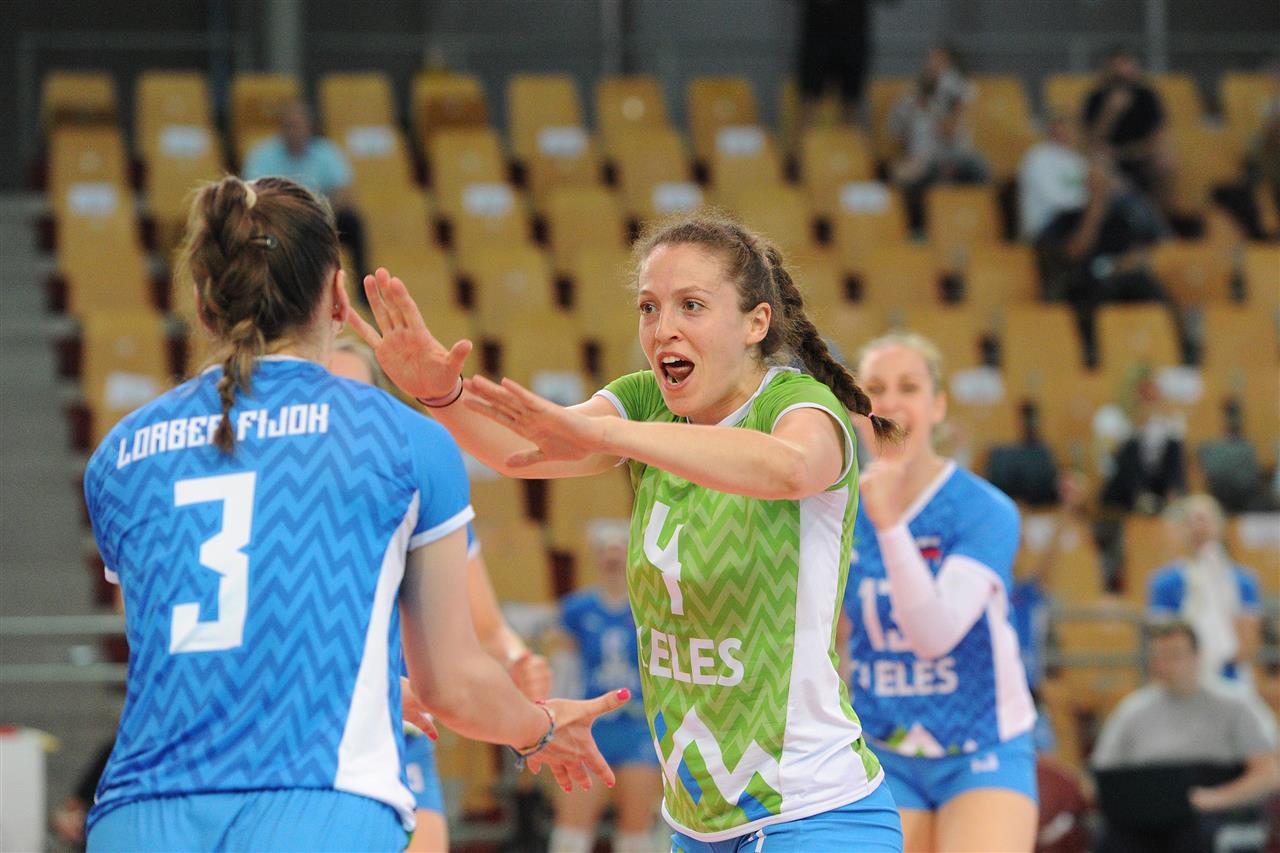 In a very tight first set, the only moment the gap went as wide as three points was at 22-19 Bosnia & Herzegovina’s way. With each of the two sides scoring exactly the same number of points by serving, by blocking and in attack, what made the difference in the set were the unforced errors. Slovenia committed two more of those than their opponents, one of them being the net touch that fixed the final 25-23 in favour of Bosnia & Herzegovina’s. Riding on the momentum, Bosnia & Herzegovina stormed into the second set on a 4-0 run, but the home side reacted immediately with five in a row to take a 5-4 lead. Another five in a row brought them up to 19-13, after which they kept the pace to a 25-19 win, shaped up by Darja Erzen with a successful hit.