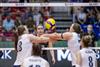 The combined total number of successful spikes achieved by both teams throughout the entire match.